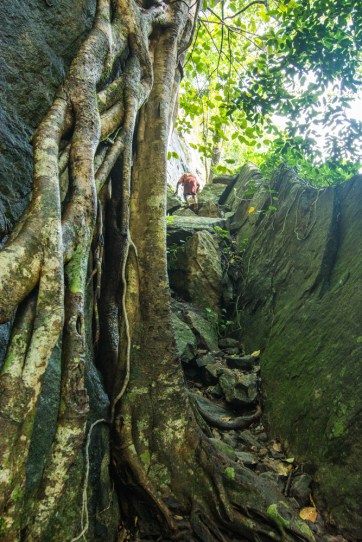 One of the multiple climbs you have to make. There is no rope or handrail for support and the rocks can be slippery.